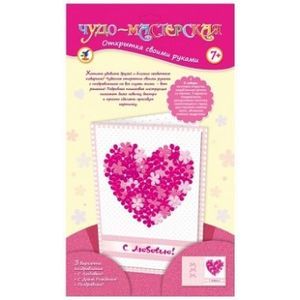 В наборе: заготовка открытки, вырубленные детали из картона, 3 варианта поздравления, самоклеящиеся стразы, объемные клейкие квадратики.
