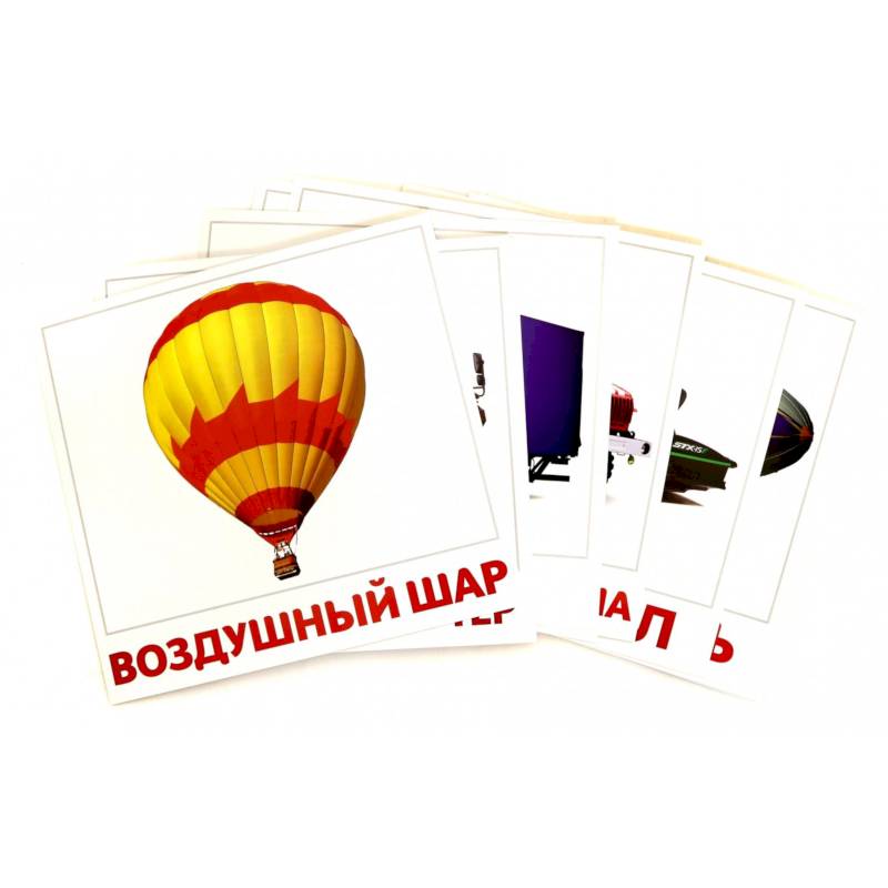 Карточки 'Транспорт' намеренно сделаны на белом фоне (по Доману), лишних деталей, мешающих восприятию, на картинках нет.