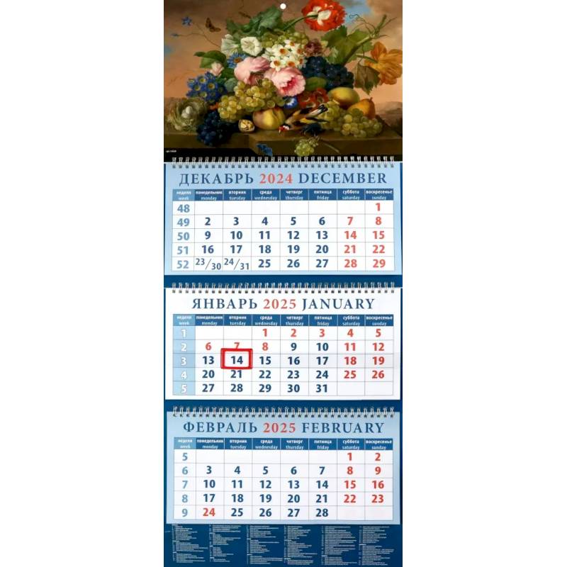 —Календарь квартальный на 2025 год Натюрморт с фруктами и цветами