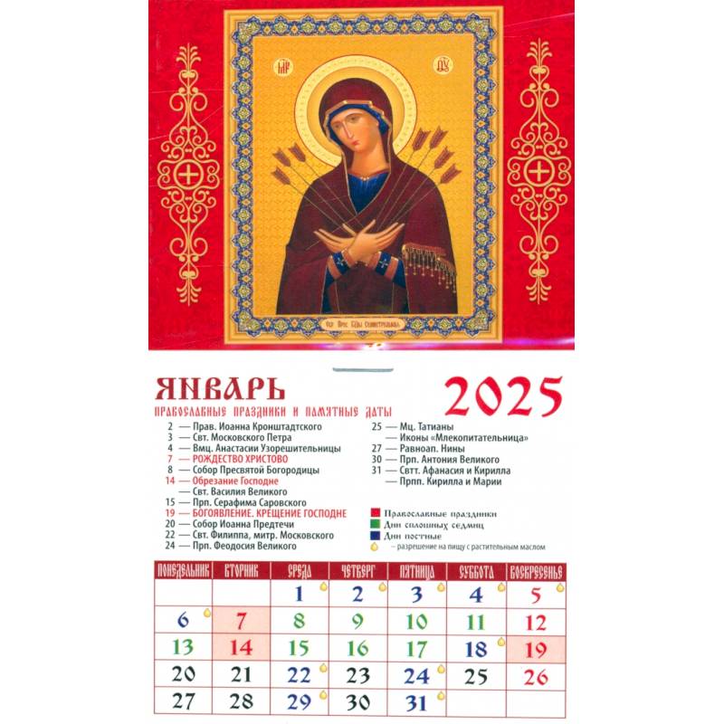—Календарь на магните на 2025 год Образ Пресвятой Богородицы Семистрельная
