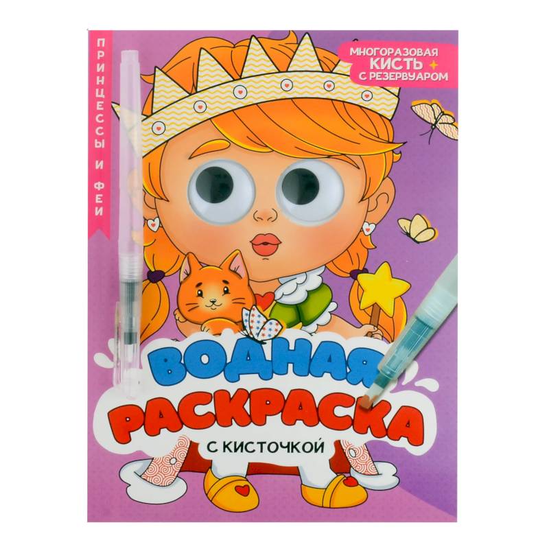 Водная раскраска с глазками и кисточкой |