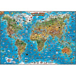 Карта мира для детей представляет собой великолепное пособие, способствующее развитию у школьников младшего и среднего возраста интереса к познанию географических, исторических и культурных особенностей нашей планеты. На односторонней настенной карте размерами 1080 х 780 мм показаны все континенты Земли, где цветом выделены равнинные, возвышенные и горные области. Основным содержанием карты является огромное количество иллюстраций, Распределённые по поверхности суши и водной поверхности, они отражают своеобразие животного мира и растительного покрова планеты, внешний облик представителей разных народов, особенности их занятий, наиболее известные памятники природы, архитектуры, науки и техники. Настенная прекрасно иллюстрированная «Карта мира для детей» упакована в прозрачный тубус (пакет с объёмным дном и еврослотом) из мягкого пластика. Размеры тубуса: длина 800 мм, диаметр 50 мм.
