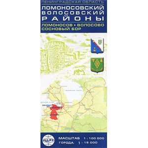 Карта содержит указатель населённых пунктов, железнодорожных станций, озёр, а также указатель улиц городов Ломоносов и Волосово Ленинградской области.