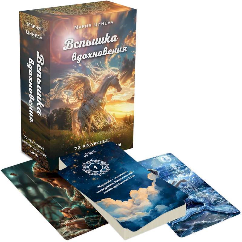 «Вспышка вдохновения» — это 72 уникальные карты, созданные специально для тех, кто ищет новые идеи, мечтает раскрыть свой творческий потенциал и освободиться от всех барьеров, мешающих творить. Эти карты от Марии Цинбал помогут победить творческий застой или страх «белого листа».