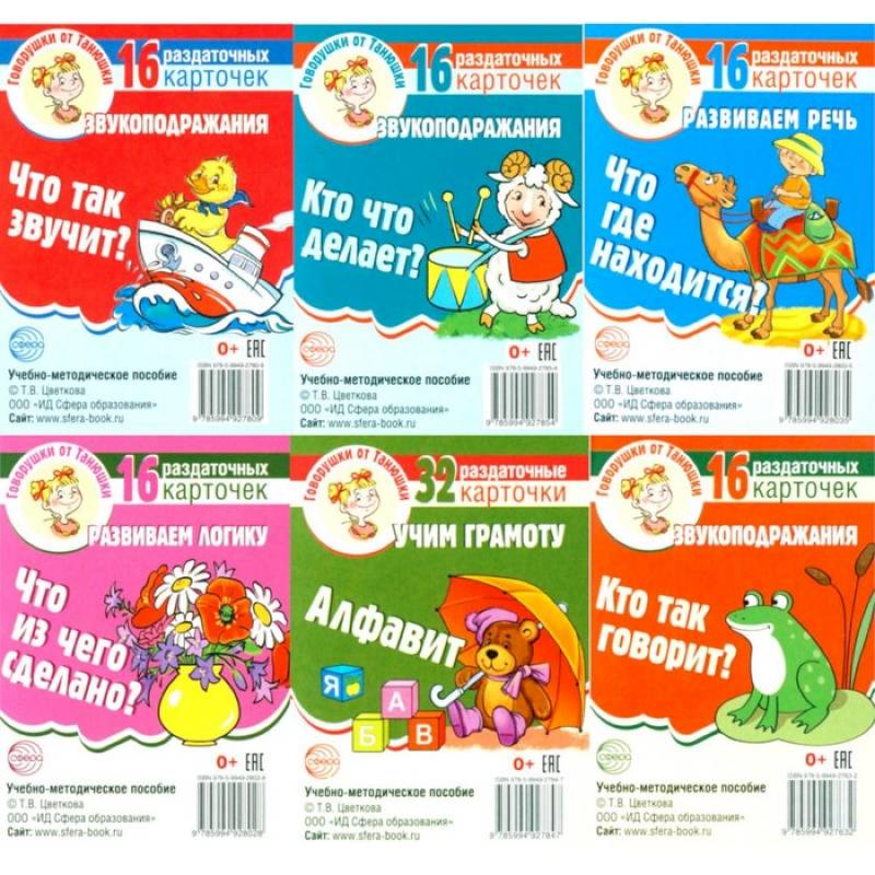 Говорушки от Танюшки. Кто так говорит? Звукоподражания 16 раздаточных карточек с текстом (63х87 мм)