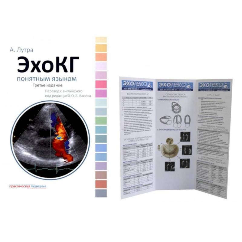Пособие в виде буклета по эхокардиографии.